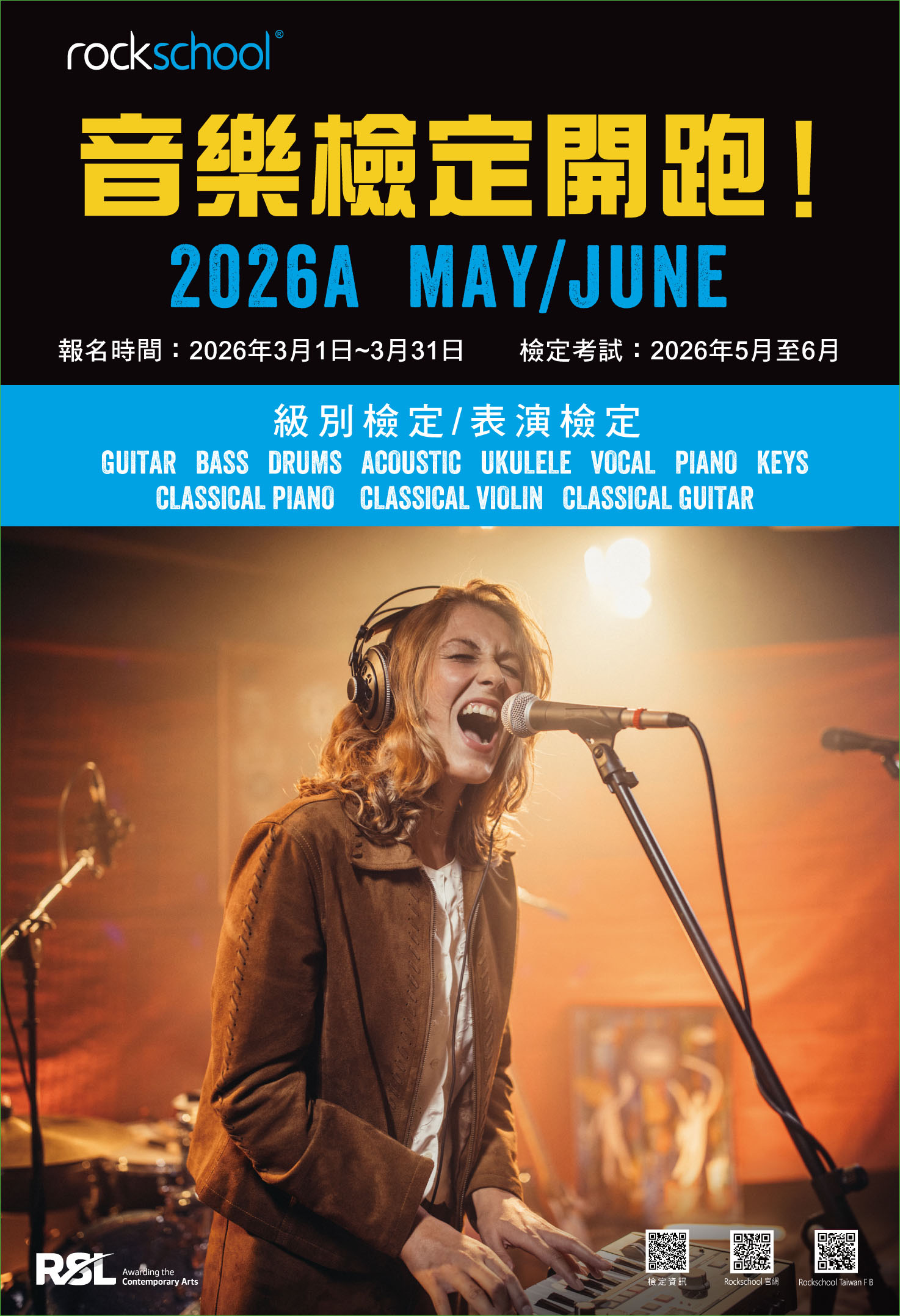 檢定地點:Rockschool Taiwan 海國樂器考場